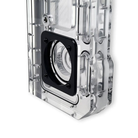Thanks to the D-RGB lighting, the distro plate is a real eye-catcher. The cooling liquid is also illuminated. Compatibility with all common motherboard RGB control software means colours and lighting effects can be individually customised to your preferences.