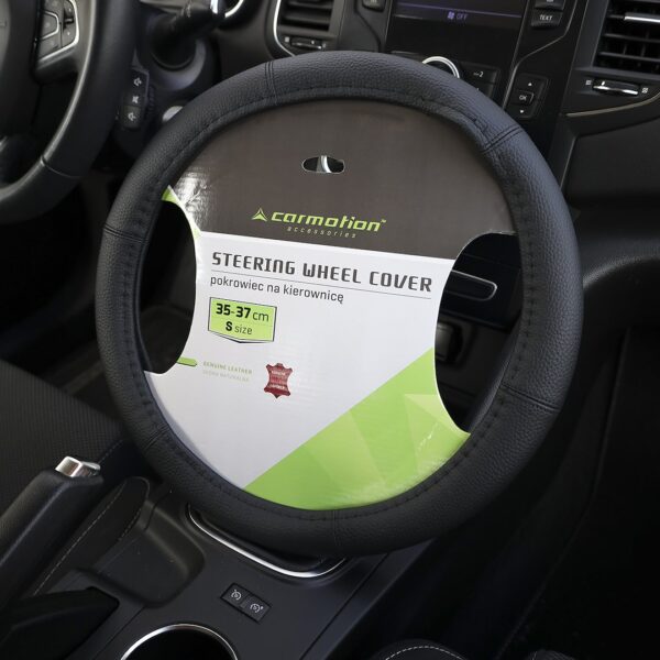 Pleasant to the touch, leather cover suitable for the steering wheel of 35-37 cm. It will improve driving comfort and will quickly and easily refresh the interior of each car. Made of 6 natural leather sections.