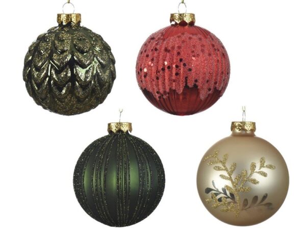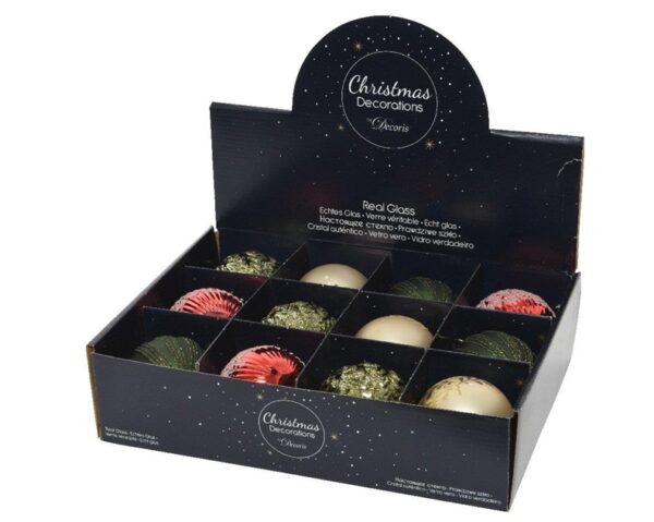 Prekės ženklas- Decoris. Artikulas- 062587. Plotis- 8 cm. Aukštis- 8 cm. Spalva- Aukso, Raudona, Žalia, Kelių galimų spalvų/dizainų, parenkama atsitiktine tvarka. Medžiaga- Stiklas. Žaisliuko tipas- Dūžtantis. Vienetai pakuotėje- 1.