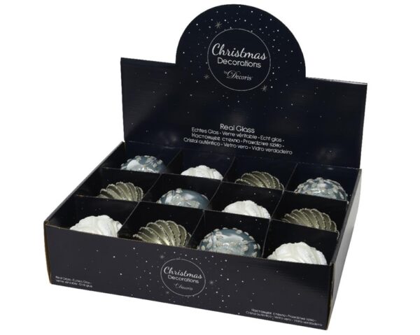 Prekės ženklas- Decoris. Artikulas- 062612. Spalva- Įvairių spalvų, Kelių galimų spalvų/dizainų, parenkama atsitiktine tvarka. Medžiaga- Stiklas. Žaisliuko tipas- Dūžtantis. Vienetai pakuotėje- 1.