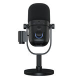 Dynamic microphone including stand, supercardioid polar pattern, USB and XLR connection, integrated mute and volume control, ideal for streaming, podcasts, and voice-over.