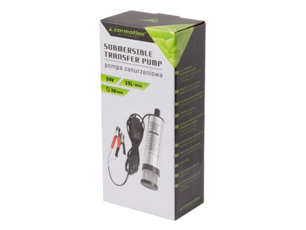 24V submersible pump with a diam. of O38 mm for pumping diesel oil, heating oil and other liquids of similar density. due to the reduced diam., it is very handy and convenient to use when pumping liquids in cars, tractors, construction machines, combines, boats, etc. A special filter made of metal mesh at the pump inlet (at the bottom) prevents suction of elements that can damage Device and liquid contamination. The throughput is approx. 15L / min when powered by 24V DC. Usage: The temperature of the pumped liquid should not exceed 30 ° C, and the maximum ambient temperature should not be higher than 40 ° C.