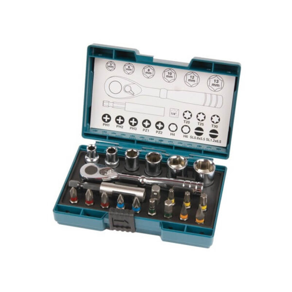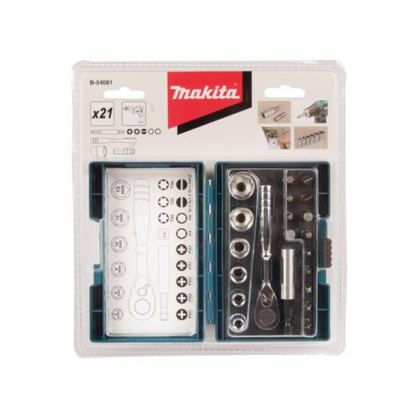 Sukimo antgalių komplektas su terkšline rankena MAKITA, 21 dalies