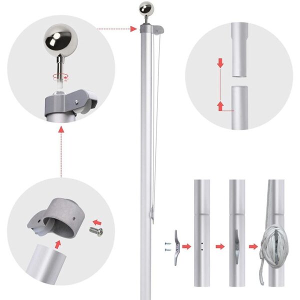 Surenkamas vėliavos stiebas, aliuminis, 6 m