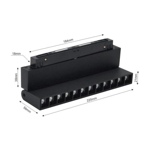 Prekės tipas- Šviestuvai. Modelis- -. Artikulas- MLP1046M. Tinkamas patalpai- Darbo kambarys, Prieškambaris, Miegamasis, Svetainė, Virtuvė, Valgomajam. Stilius- Modernus. Šviestuvo tipas- Bėginei sistemai. Montavimo tipas- Tvirtinamas prie lubų arba sienos. Lemputės lizdas- LED. Maksimali galia- 12 W. Maksimalus lemputės galingumas- 12 W. Su lempute(-ėmis) komplekte- Taip. Lempučių skaičius- 1. Lemputės tipas- Integruota LED. Apsaugos laipsnis (IP)- IP20. Garantija- 24 mėn. Spalvos temperatūra- 3000 – 6000°K. Šviesos srautas- 1080 – 1080lm. Su valdymo pulteliu- Ne. Įtampa- 48 – 48V. Prekės ženklas- Modoled. Papildoma informacija- Šviestuvą galima valdyti nuotolinio valdymo pultu (reikia įsigyti atskirai) arba TUYA išmaniąja programėle. Pultelio veikimo atstumas iki 8m.. Ilgis- 22.5 – 22.5cm. Plotis- 2.2 – 2.2cm. Aukštis- 13.6 – 13.6cm. Gaubto spalva- Juoda. Gaubto medžiaga- Aliuminis. Korpuso spalva- Juoda. Šviestuvo efektyvumas- 90 lm/W.