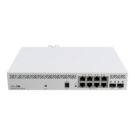 | Summary | Mikrotik CSS610-8P-2S+IN. Switch type: Managed. Basic switching RJ-45 Ethernet ports type: Gigabit Ethernet (10/100/1000), Basic switching RJ-45 Ethernet ports quantity: 8, Installed SFP+ modules quantity: 2. Switching capacity: 56 Gbit/s. Networking standards: IEEE 802.3af, IEEE 802.3at. DC input voltage: 48 – 57 V. Power over Ethernet (PoE). Rack mounting |