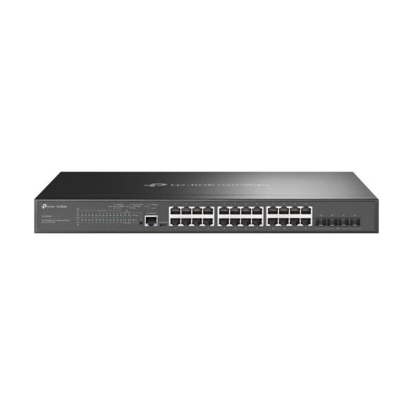 | Summary | TP-Link Omada 28-Port Gigabit L2+ Managed Switch with 24-Port PoE+. Switch type: Managed, Switch layer: L2+. Basic switching RJ-45 Ethernet ports type: Gigabit Ethernet (10/100/1000), Basic switching RJ-45 Ethernet ports quantity: 24, Console port: RJ-45/Micro-USB. MAC address table: 16000 entries, Switching capacity: 56 Gbit/s. Networking standards: IEEE 802.3ab, IEEE 802.3af, IEEE 802.3at, IEEE 802.3i, IEEE 802.3u, IEEE 802.3z. Power connector: AC-in jack. Power over Ethernet (PoE). Rack mounting, Form factor: 1U |