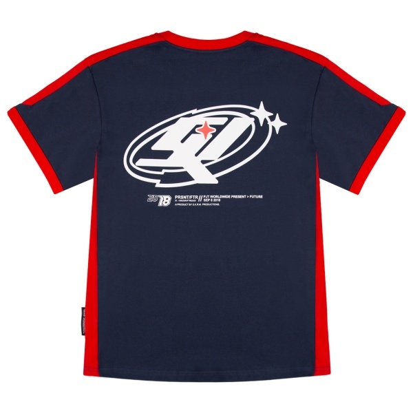 Dark blue color makes this T-shirt versatile, easy to pair with various wardrobe pieces. Its simple yet modern look is highlighted by contrasting collar and finishes as well as striking graphic details, giving the product a distinct character. The T-shirt is perfect for both casual and more streetwear outfits.