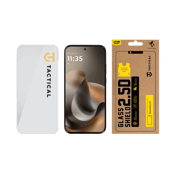Premium Tactical Glass Shield 2.5D for the best screen protection. The glass protects the flat part of the display and sticks to its entire surface. Adhesion to the phone display is perfect and bubble-free. The thickness of the glass is 0.33 mm, so it is practically indistinguishable on the display, but thanks to the 9H hardness, it is strong and durable enough to protect the phone’s display in the event of an accidental fall or minor scratches. Glass hardness 9H indicates the Mohs scale of mineral hardness. It ranges from 1 to 10, where 10 indicates the hardness of the diamond. The scale is represented only by numbers without the "H" suffix. The suffix H stands for graphite hardness. So the H means that the protective glass is harder than this type of graphite. The surface has an oleophobic coating which prevents fingerprint and oil stains as well as water and is very easy to clean. After installing the glass, the touch properties of the display do not deteriorate and the colors of the display are not distorted. The package includes an alcohol wipe for cleaning and degreasing the display, a microfiber cloth for perfect polishing before installation and also with already glued glass. TOO DURABLE TO RESIST Here at Tactical, we make sure things last and we stand behind the quality of our products! That is why we are able to offer a LIFETIME WARRANTY on this product as part of Tactical’s above-standard care. BE ECO We at Tactical love nature. All our products are packed in ECO boxes made from recycled materials paper in such a way as to have as little burden on the environment as possible. Think tactically!