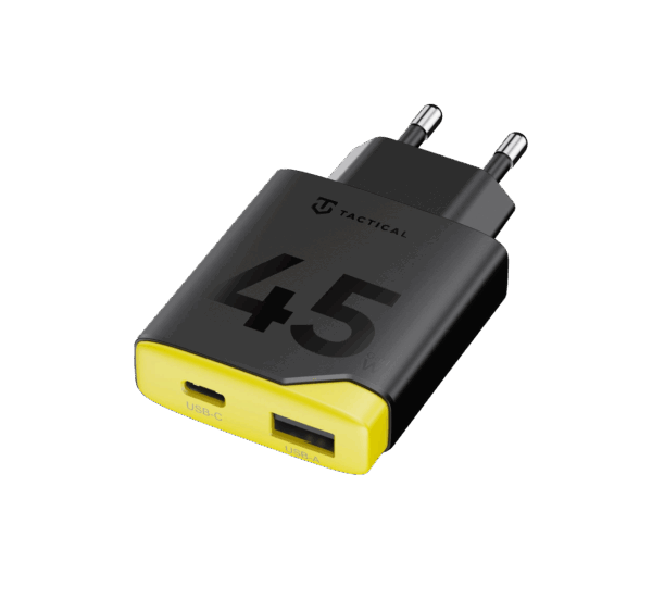 Small body. Heavy firepower. The Tactical Minimi 45W is powered by advanced GaN technology, packing serious performance into a body that fits in any pocket. Small in size. Big on power. Equipped with 2 USB ports, fast charging and a built-in 4-layer protection system, it’s designed for everyday carry without compromise. 45W GaN Minimal footprint. Maximum power. Modern GaN technology delivers higher efficiency and stronger performance in a significantly smaller body. Less heat. More control. More power where it matters. With 45W output, charging a small notebook, tablet or a phone is no problem. Fits anywhere. Charges almost anything.* OUTPUT AND PROTECTION Inside its compact shell runs an intelligent protection system that actively safeguards every charging session against: Overvoltage, Overheating, Overcurrent, Short circuit. 1 USB-A and 1 USB-C port ensures fast, stable, and efficient charging. It supports multiple fast-charge standards and automatically adjusts power delivery to match your device. Plug in. Power up. Move on. TOO DURABLE TO RESIST At Tactical, we pay attention to details. MINIMI offers only the best in its category, using durable materials with UL94 standard and the latest technologies for maximum performance and longevity. That’s why this cable is covered by our Lifetime Warranty Program.* See Tactical’s lifetime warranty terms and conditions. BE ECO We respect nature. All our products are packed in ECO -friendly boxes made from recycled paper minimizing environmental impact. Be tactical! At all costs! KEY FEATURES 45W GaN technology Compact size 1 USB-C ports 1 USB-A port
