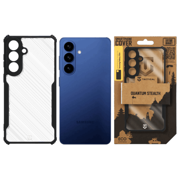 Your reliable partner in the daily hustle and bustle of life. Introducing the Quantum Stealth cover from Tactical. Reinforced corners Reinforced horns can survive impact like seasoned warriors. The reinforced corners of the case are your first line of defense against impacts, protecting your device in its most vulnerable parts. Flexible shell The flexible core is the backbone of this tough guy. An overlapping lens frame protects your camera and keeps your photos sharp even in the midst of chaos. MIL-STD-810 516 – BATTLE TESTED Tactical Quantum Stealth meets the rigorous MIL-STD-810 516 military standard, ensuring superior shock and impact resistance. This fella is engineered for ultimate protection to stay fully focused on your adventures. Original Tactical style The transparent back cover makes you visible. Tactical Quantum Stealth protects your device while complementing your unique style. Protect your device without sacrificing style. Preparedness Available for selected iPhone, Xiaomi, Motorola, Infinix, Google and Samsung Galaxy models. Whatever your gear, Tactical has got your back. Irresistibly durable This piece is not just for show. Here at Tactical, we make sure things last. Tactical Quantum Stealth has been subjected to harsh conditions and we have used very durable materials and applied the latest technologies for the best protection output. The phone will thus remain safe even in the most extreme conditions. BE ECO We at Tactical love nature. All our products are packed in ECO boxes made of recycled paper so as to have as little impact on the environment as possible. Think tactically!