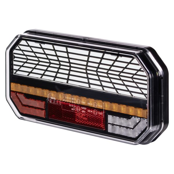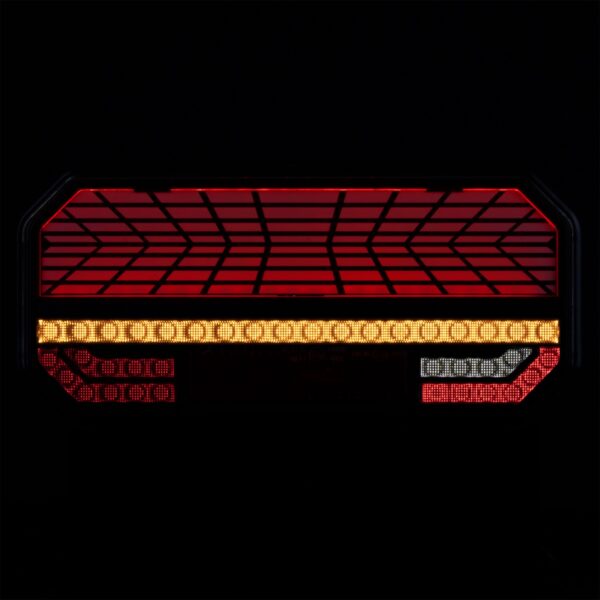 Thanks to its 60 LEDs, the light provides excellent visibility and a modern look. Its waterproof construction (IP67) and R10, R148, and R150 approvals confirm compliance with European standards. The dynamic turn signal improves the readability of signals for other road users.