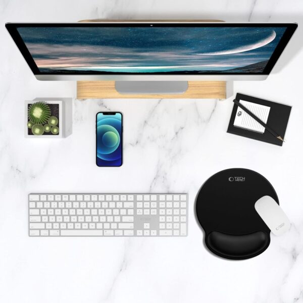 The contoured gel wrist rest evenly distributes pressure, minimizing the risk of pain and hand fatigue during prolonged use. The smooth material ensures precise and smooth mouse tracking, increasing comfort for both office work and gaming.