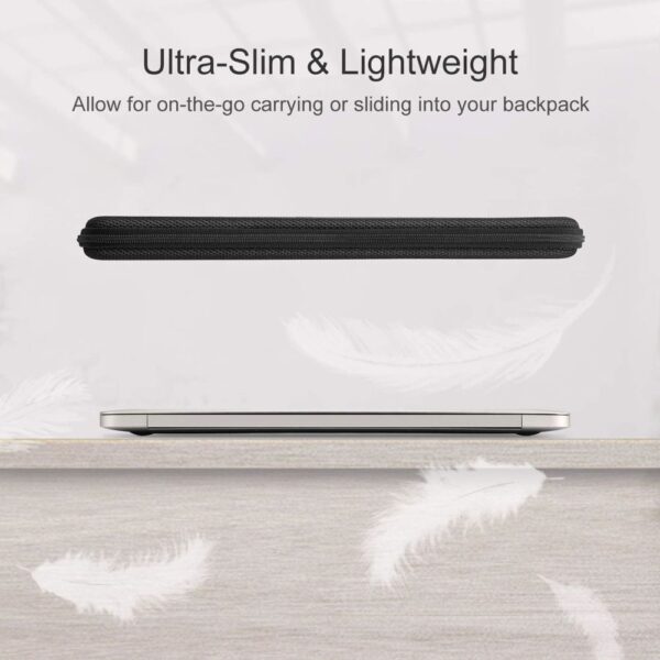 The case features a double zipper for convenient and quick opening and added security. The interior is lined with a soft, protective material to prevent scratches to the screen and casing. Thanks to its slim, thin design, the Hardpouch easily fits into a backpack, bag, or suitcase, taking up no unnecessary space.