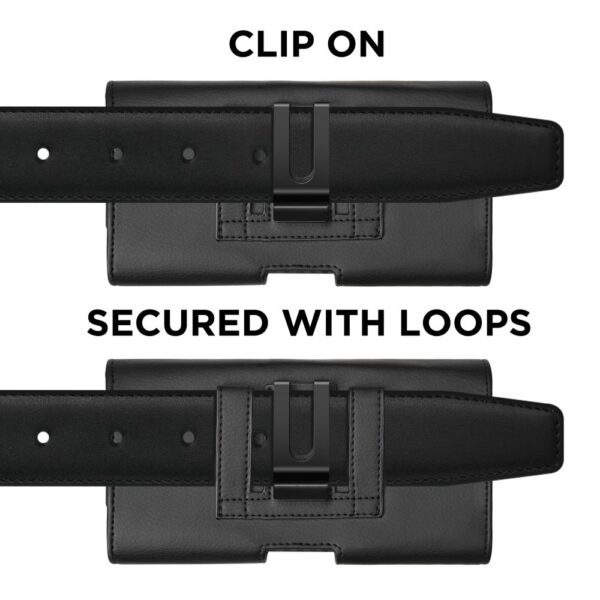 For ease of use, the case is equipped with a durable belt clip and two additional belt loops that ensure a stable and secure fit – whether you're at work, traveling, or just taking a walk. The clip is sturdy and stable, ensuring a secure fit, while the magnetic clasp on the front prevents the case from accidentally opening.