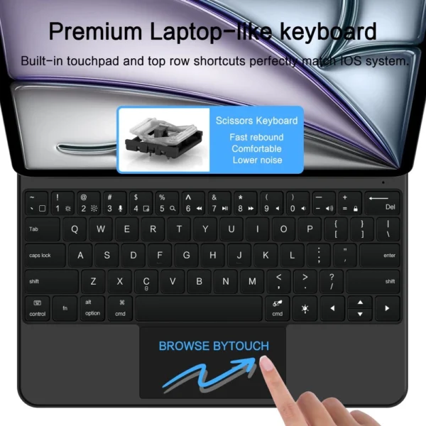 The included backlit Bluetooth keyboard has a comfortable, laptop-style layout and a precise touchpad, so you can type, browse the web, and interact with apps without having to touch the screen. Built-in system shortcuts speed up work, and the keyboard is easy to connect and use.