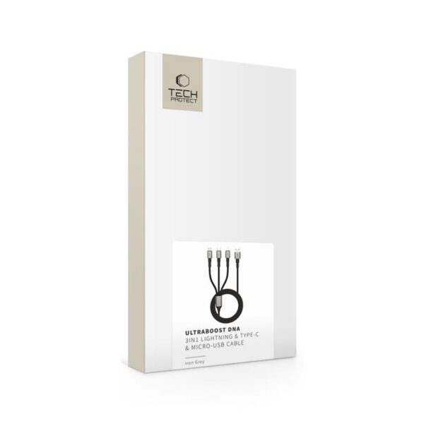 Tech-Protect UltraBoost DNA 3in1 USB-C / Micro-USB / Lightning kabelis 120 cm – pilkos spalvos