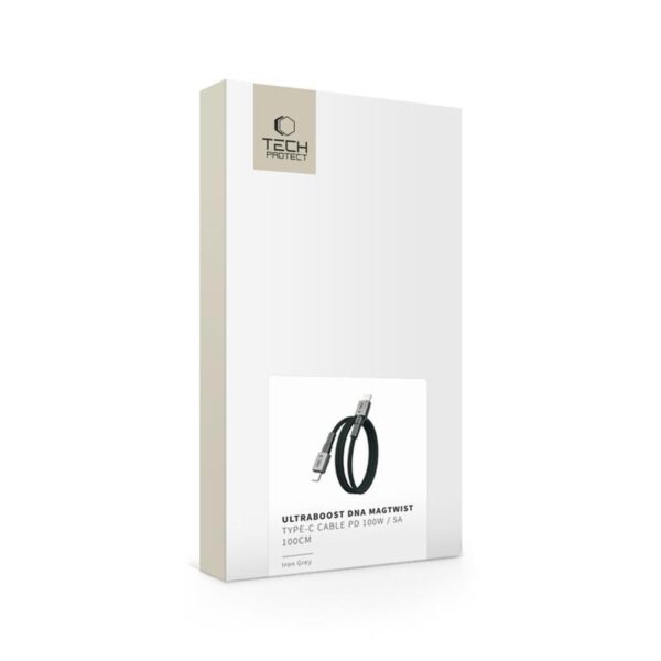 Tech-Protect Ultraboost DNA MagTwist USB-C PD kabelis 100W / 5A 100 cm – pilkos spalvos
