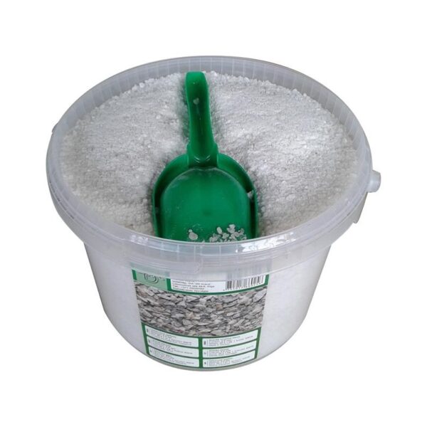 Prekės ženklas- -. Svoris- 12 kg. Sudėtis- Natrio chloridas . Medžiaga- Druska. Paskirtis- Tirpinti ledą, Tirpinti sniegą. Tinka temperatūrai iki- -10 °C. Naudojimas- Barstyti sausą. Papildoma informacija- 0,2 – 5,0 mm. Kibirėlis su kastuvu..
