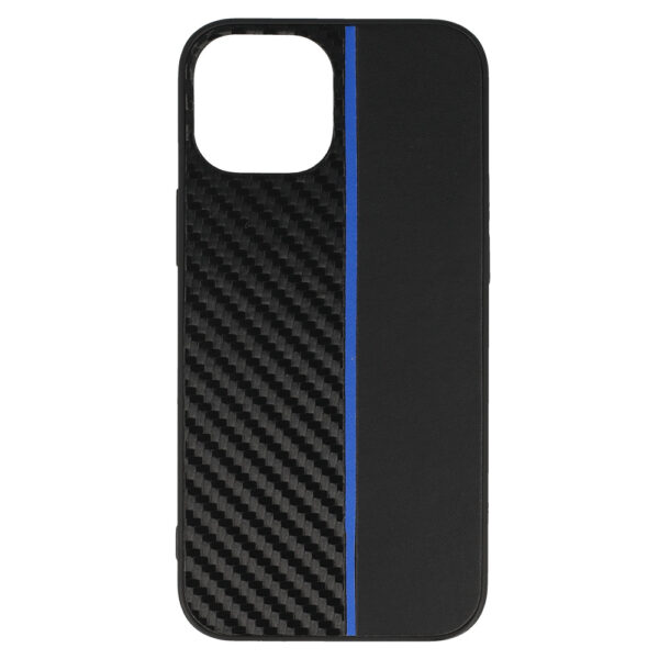 Tel Protect CARBON Dėklas skirtas Apple iPhone 13 Mini juodos spalvos su mėlynos spalvos virvele