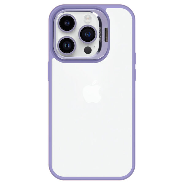 Tel Protect Kickstand dėklas + apsauginis stiklas kamerai (lens) skirtas Apple iPhone 14 light violetinės spalvos