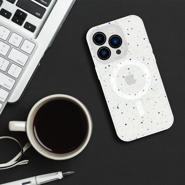 Tel Protect Magnetic Splash Frosted Case – is a semi-transparent matt case, decorated with a unique Splash pattern. The case protects the back, sides and screen of the smartphone. Magnets built into the case make it compatible with Apple’s MagSafe accessories.