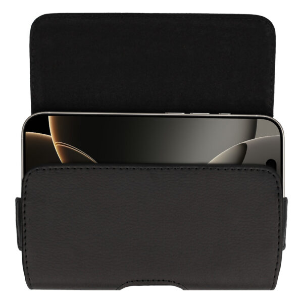 Tel Protect MAX Belt Holster (SIZE 17) skirtas Apple iPhone 16/16 Pro/17/17 Pro/Samsung A54 5G/S23 FE/S24/S24 Plus/S25/S25 Plus black, leather (155x75x12 mm)
