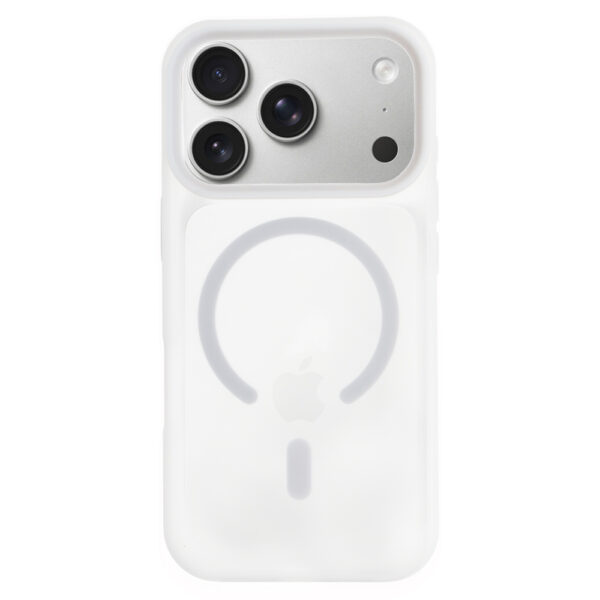A minimalist matte-finish case that is fully semi-transparent – both the sides and the back. The hybrid build combines flexible TPU sides with a more rigid PC back panel, delivering comfortable handling and reliable everyday protection. A built-in magnetic ring ensures compatibility with MagSafe accessories.