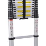 - Teleskopinių kopėčių krepšio viduryje yra anga, skirta greitai ir patogiai suimti kopėčias .