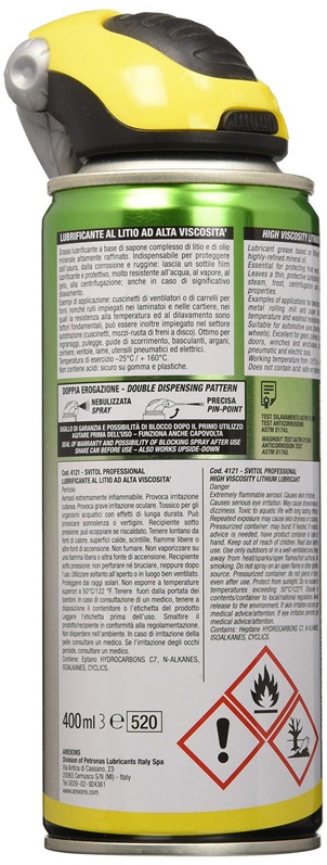 Prekės ženklas- Arexons. Tūris- 400 ml. Skirta paviršiams- Metaliniams, Plastikiniams . Atsparumas- Aukštai temperatūrai , Cheminėms medžiagoms , Druskoms , Vandeniui , Žemai temperatūrai . Naudojimas- Kokybiškai sutepa įvairius mechanizmus, guolius ir krumpliaračius. Papildoma informacija- su ličiu.