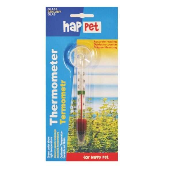 Vidinis akvariumo termometras. Matavimo skalė 0-50 laipsnių pagal Celcijų. Gamintojas: HapPet, Lenkija.