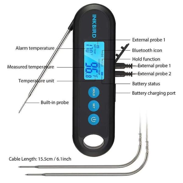 Prekės ženklas- Inkbird. Ilgis- 20 cm. Spalva- Juoda. Medžiaga- Metalas, Plastikas.