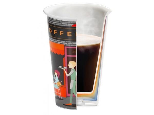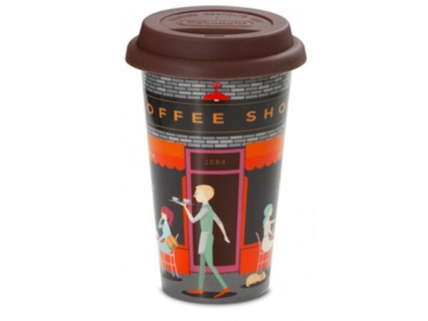 - Kavos gėrimai išsinešimui! Pasigaminkite ir pasiimkite su savimi gėrimą, šiame dvigubos sienos keraminiame puodelyje.