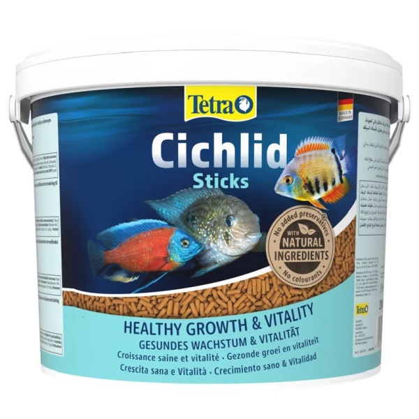 Lazdelių formos pašaras skirtas visų rūšių ciklidams ir kitoms didelėms dekoratyvinėms akvariumų žuvims. Sudėtyje yra visų žuvims gyvybiškai reikalingų mineralinių medžiagų, vitaminų ir mikroelementų. Specialiai pritaikytas didelėms žuvims, kurios mėgsta maitintis vandens paviršiuje, nes pašaras neskęsta, o plaukioja paviršiuje. Lengvai virškinamas. Sudėtis: žuvis ir žuvies perdirbimo produktai, daržovių perdirbimo produktai, augalinių baltymų ekstraktai, mielės, grūdai, aliejus ir riebalai, mineralai, dumbliai. Priedai: vitaminas A – 30480 TV, vitaminas D3 – 1900 TV, manganas – 69 mg, cinkas – 41 mg, geležis – 27 mg, kobaltas – 0,5 mg, bentonitas – 5100 mg. Sudėtyje yra ES leistinų dažiklių ir konservantų. Sudėties analizė: žali baltymai – 46 %, neapdoroti aliejai ir riebalai – 8 %, žalia ląsteliena – 2 %, drėgnis – 6 %. Šėrimo rekomendacijos: šerti keletą kartų per dieną, duoti tiek, kiek žuvys suėda per kelias minutes. Gamintojas: „Tetra“, Vokietija.