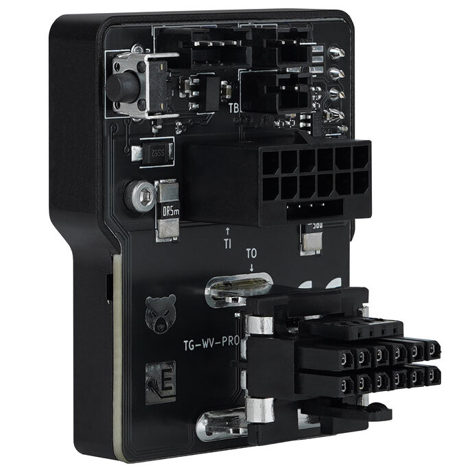 Depending on the graphics card used, especially in the case of the GeForce RTX 4090, up to 450 watts of power can flow through the WireView connectors. The resulting heat can warm the PCB at the WireView connector to up to 60 degrees Celsius in the case of an air-cooled GPU. In the case of a water-cooled GPU without airflow, the PCB of the WireView can heat up to 100 degrees Celsius! The WireView housing should not be touched during operation. After turning off the system, allow the WireView to cool before handling it.