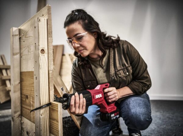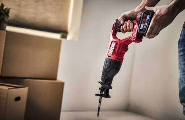 - Akumuliatorinis tiesinis pjūklas SKIL 3471 su varikliu be šepetėlių puikiai tinka įvairiems darbams, pvz., juo galima pjauti vamzdžius, sijas ir šakas.