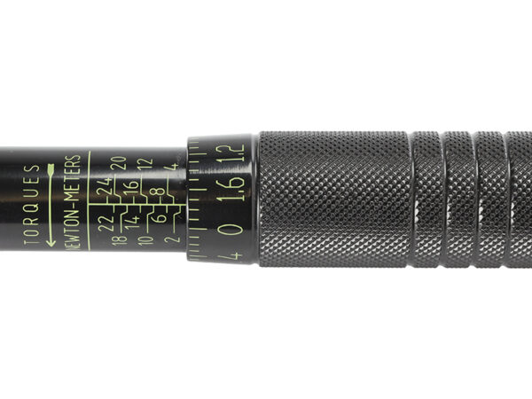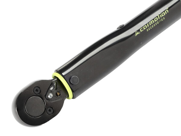 A torque wrench allows you to tighten a bolt or nut with a specific force, called torque. Setting a specific wrench torque causes appropriate spring tension, allowing the screw to be tightened with the intended force. Torque wrenches are equipped with a special ratchet that engages when the required nut or bolt tightening force is reached. The key has a calibration certificate.