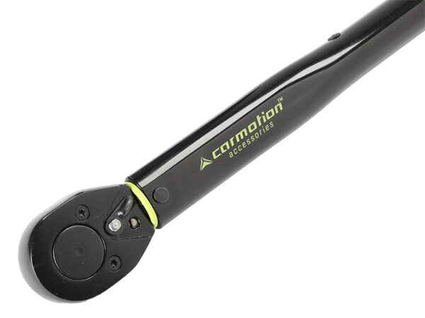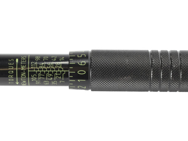 A torque wrench allows you to tighten a bolt or nut with a specific force, called torque. Setting a specific wrench torque causes appropriate spring tension, allowing the screw to be tightened with the intended force. Torque wrenches are equipped with a special ratchet that engages when the required nut or bolt tightening force is reached. The key has a calibration certificate.