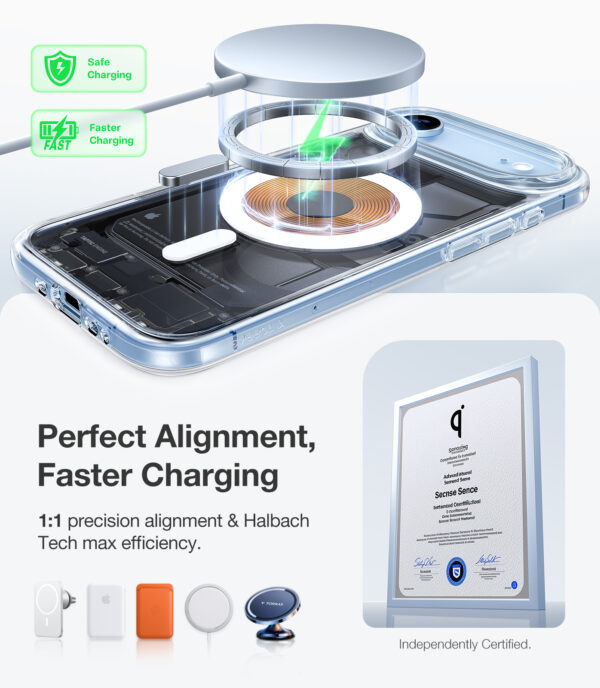 Integrated N56 magnets ensure a secure connection with magnetic MagSafe accessories and smooth wireless charging.