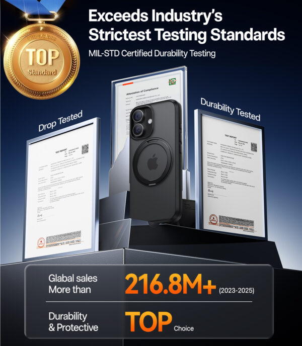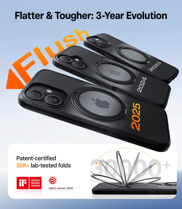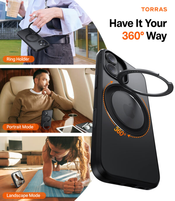 The TORRAS Ostand Pro Magnetic is a protective case with an integrated rotating ring, strong magnetic attachment, and a shock-absorbing design for everyday use. It combines a slim profile and durable materials in a practical solution designed for a more secure grip, versatile use, and reliable protection.