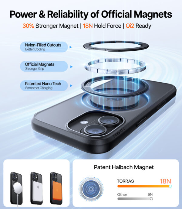 The integrated magnetic system provides an attachment force of 18N and MagSafe compatibility for stable attachment and reliable everyday use. At the same time, the design supports smooth and convenient wireless charging.