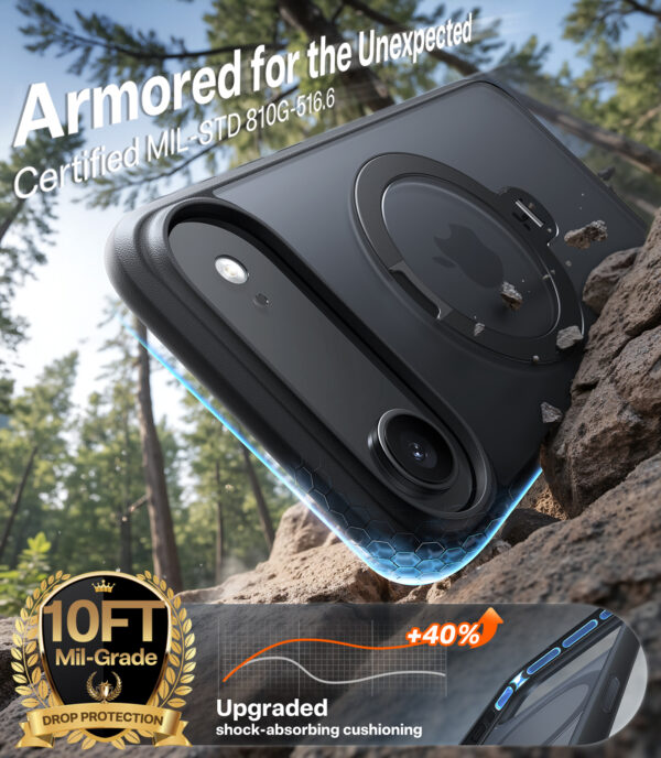 A slim protective case with a 360° rotating stand, strong magnetic attachment, and a design made for comfortable everyday use.