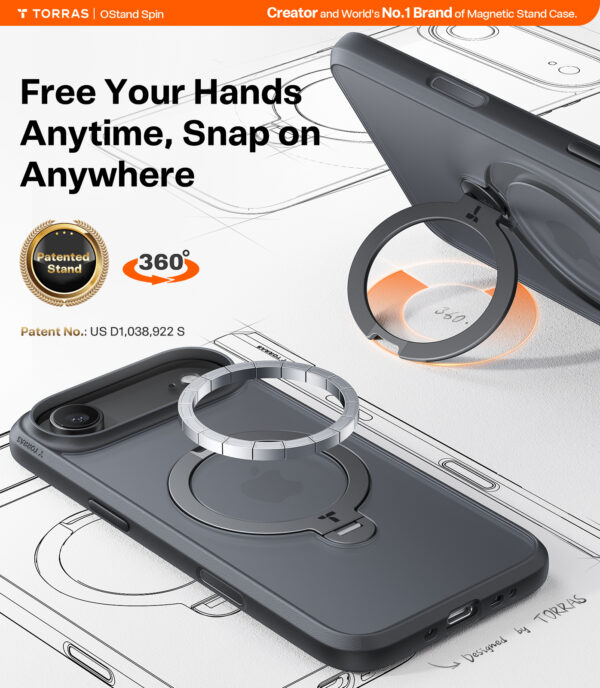 Torras Ostand Q3 Spin, juodos spalvos – Apple iPhone 17 Air