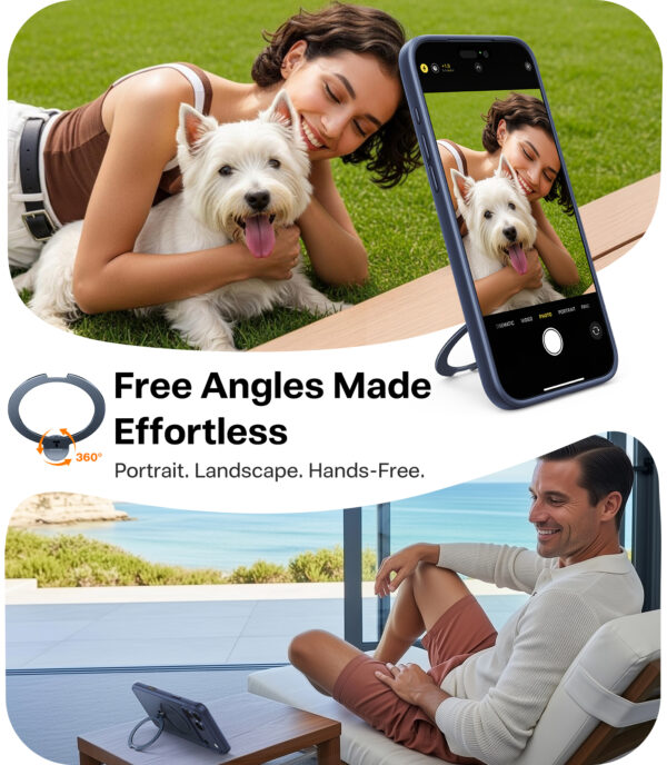 A slim protective case with a 360° rotating stand, strong magnetic attachment, and a design made for comfortable everyday use.