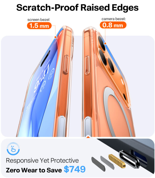 - Raised edges around the display and camera lenses