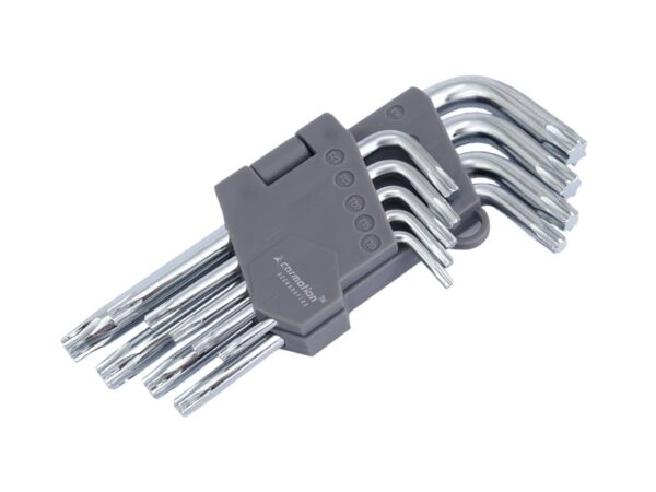 Set includes – 9 TORX keyes: T10, T15, Y20, T25, T27, T30, T40, T45, T50 Keys made of chrome vanadium steel.