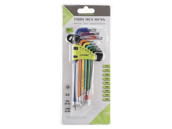 Torx šešiakampiai raktai 230 mm T10 – T50, 9 vnt, mixed colors