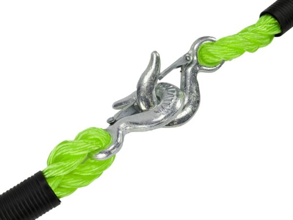 Strong, braided tow rope, 4 m long, terminated in hooks with protection against unhooking. Permissible gross weight of the towed vehicle up to 2000 kg.