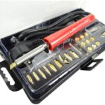 Transformatorinis lituoklis LT-B-100W, skirtas bendram naudojimui metaliniams elementams sujungti, rekomenduojamas remonto darbams ir meistravimui namų ūkyje. Techniniai duomenys: – vardinė įtampa: 230V, 50Hz – galios suvartojimas: 100W – antgalio temperatūra: 480 °C – darbo režimas: protarpinis – darbo laikas: 0,5 min – pertraukos laikas: 1,5 min – antgalio apšvietimas: lemputė 12V, 2W – antgalio skersmuo: 1,8mm – svoris: 0,8kg