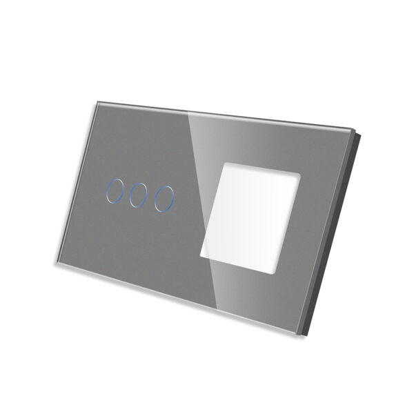 - Pilkas tripolis sensorinis dangtelis su vienviečiu rėmeliu (matmenys 157 × 86 mm);